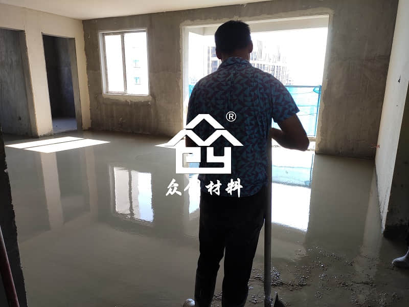 眾創材料入駐慈溪江濱之城厚水泥基自流平施工現場報道